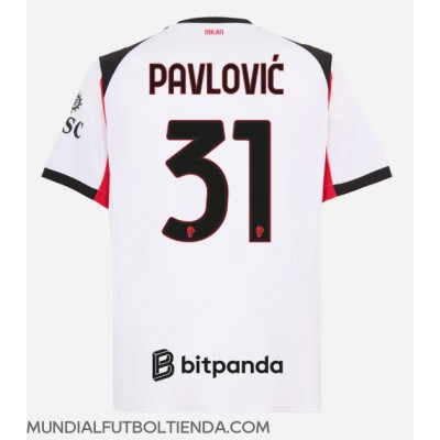 Camiseta AC Milan Strahinja Pavlovic #31 Segunda Equipación Replica 2025-26 mangas cortas