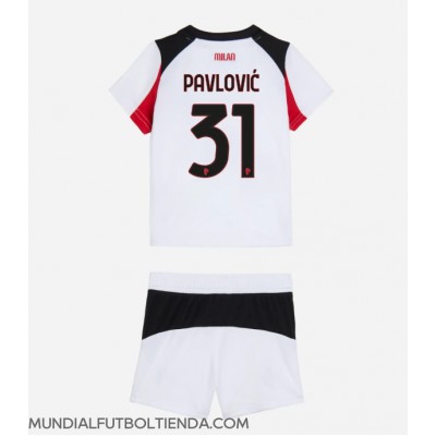 Camiseta AC Milan Strahinja Pavlovic #31 Segunda Equipación Replica 2025-26 para niños mangas cortas (+ Pantalones cortos)