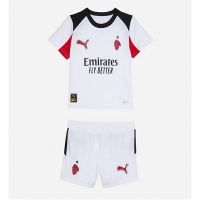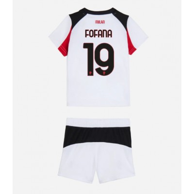Camiseta AC Milan Youssouf Fofana #19 Segunda Equipación Replica 2025-26 para niños mangas cortas (+ Pantalones cortos)