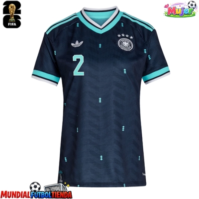 Camiseta Alemania Antonio Rudiger #2 Segunda Equipación Replica Mundial 2026 para mujer mangas cortas