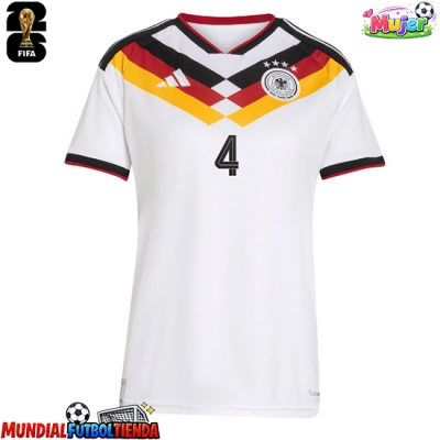 Camiseta Alemania Jonathan Tah #4 Primera Equipación Replica Mundial 2026 para mujer mangas cortas