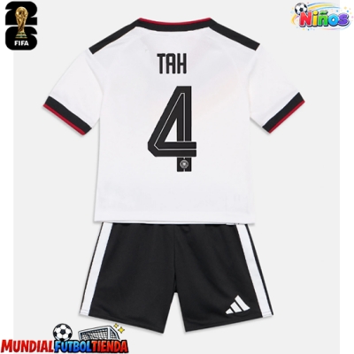 Camiseta Alemania Jonathan Tah #4 Primera Equipación Replica Mundial 2026 para niños mangas cortas (+ Pantalones cortos)
