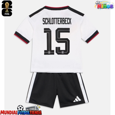 Camiseta Alemania Nico Schlotterbeck #15 Primera Equipación Replica Mundial 2026 para niños mangas cortas (+ Pantalones cortos)