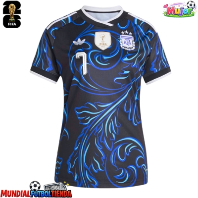 Camiseta Argentina Rodrigo De Paul #7 Segunda Equipación Replica Mundial 2026 para mujer mangas cortas