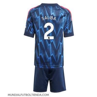 Camiseta Arsenal William Saliba #2 Segunda Equipación Replica 2025-26 para niños mangas cortas (+ Pantalones cortos)