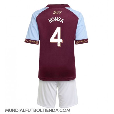 Camiseta Aston Villa Ezri Konsa #4 Primera Equipación Replica 2025-26 para niños mangas cortas (+ Pantalones cortos)