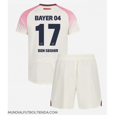 Camiseta Bayer Leverkusen Eliesse Ben Seghir #17 Segunda Equipación Replica 2025-26 para niños mangas cortas (+ Pantalones cortos)