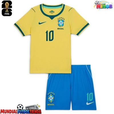 Camiseta Brasil Vinicius Junior #10 Primera Equipación Replica Mundial 2026 para niños mangas cortas (+ Pantalones cortos)