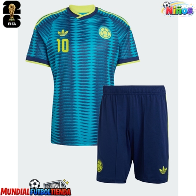 Camiseta Colombia James Rodriguez #10 Segunda Equipación Replica Mundial 2026 para niños mangas cortas (+ Pantalones cortos)