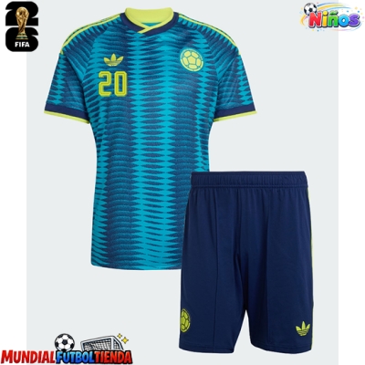 Camiseta Colombia Juan Fernando Quintero #20 Segunda Equipación Replica Mundial 2026 para niños mangas cortas (+ Pantalones cortos)
