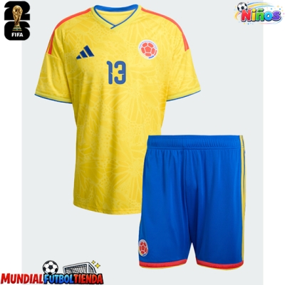 Camiseta Colombia Yerry Mina #13 Primera Equipación Replica Mundial 2026 para niños mangas cortas (+ Pantalones cortos)