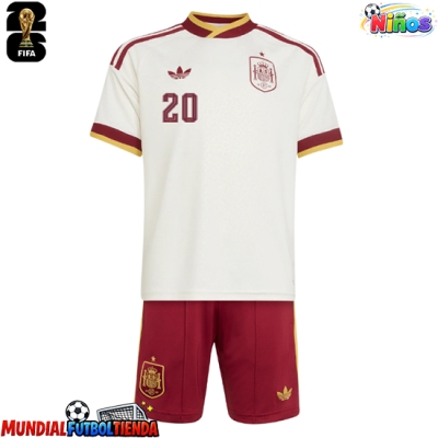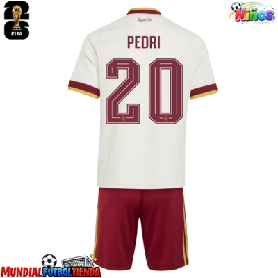 Camiseta España Pedri Gonzalez #20 Segunda Equipación Replica Mundial 2026 para niños mangas cortas (+ Pantalones cortos)