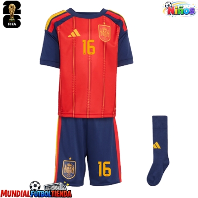Camiseta España Rodri Hernandez #16 Primera Equipación Replica Mundial 2026 para niños mangas cortas (+ Pantalones cortos)