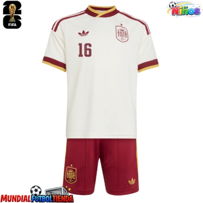 Camiseta España Rodri Hernandez #16 Segunda Equipación Replica Mundial 2026 para niños mangas cortas (+ Pantalones cortos)