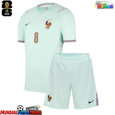 Camiseta Francia Aurelien Tchouameni #8 Segunda Equipación Replica Mundial 2026 para niños mangas cortas (+ Pantalones cortos)