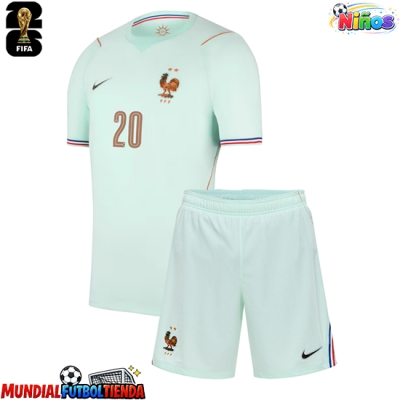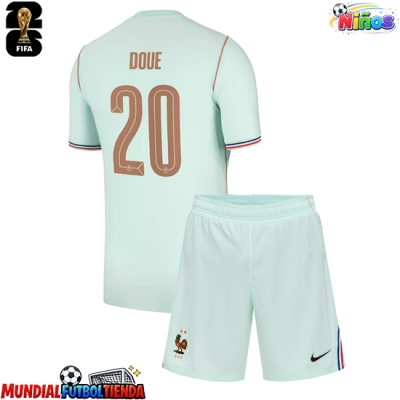 Camiseta Francia Desire Doue #20 Segunda Equipación Replica Mundial 2026 para niños mangas cortas (+ Pantalones cortos)