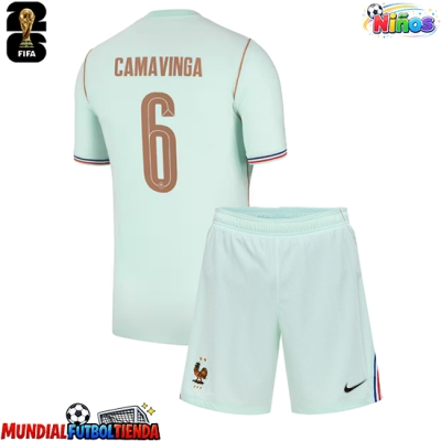 Camiseta Francia Eduardo Camavinga #6 Segunda Equipación Replica Mundial 2026 para niños mangas cortas (+ Pantalones cortos)