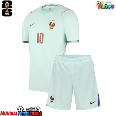 Camiseta Francia Kylian Mbappe #10 Segunda Equipación Replica Mundial 2026 para niños mangas cortas (+ Pantalones cortos)