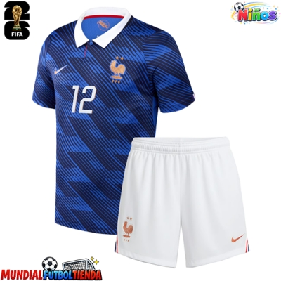 Camiseta Francia Randal Kolo Muani #12 Primera Equipación Replica Mundial 2026 para niños mangas cortas (+ Pantalones cortos)