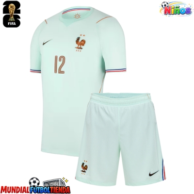 Camiseta Francia Randal Kolo Muani #12 Segunda Equipación Replica Mundial 2026 para niños mangas cortas (+ Pantalones cortos)