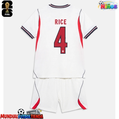 Camiseta Inglaterra Declan Rice #4 Primera Equipación Replica Mundial 2026 para niños mangas cortas (+ Pantalones cortos)