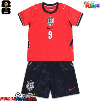 Camiseta Inglaterra Harry Kane #9 Segunda Equipación Replica Mundial 2026 para niños mangas cortas (+ Pantalones cortos)