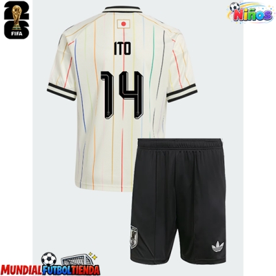 Camiseta Japón Junya Ito #14 Segunda Equipación Replica Mundial 2026 para niños mangas cortas (+ Pantalones cortos)