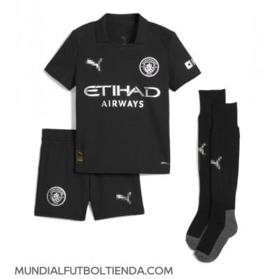 Camiseta Manchester City Jeremy Doku #11 Segunda Equipación Replica 2025-26 para niños mangas cortas (+ Pantalones cortos)