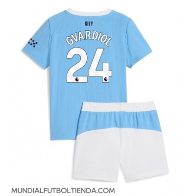 Camiseta Manchester City Josko Gvardiol #24 Primera Equipación Replica 2025-26 para niños mangas cortas (+ Pantalones cortos)