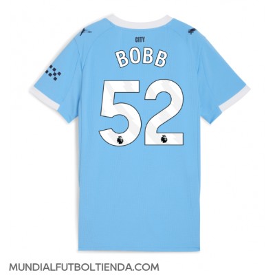 Camiseta Manchester City Oscar Bobb #52 Primera Equipación Replica 2025-26 para mujer mangas cortas