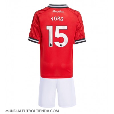 Camiseta Manchester United Leny Yoro #15 Primera Equipación Replica 2025-26 para niños mangas cortas (+ Pantalones cortos)
