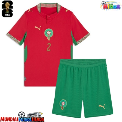Camiseta Marruecos Achraf Hakimi #2 Primera Equipación Replica Mundial 2026 para niños mangas cortas (+ Pantalones cortos)