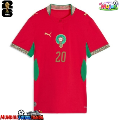 Camiseta Marruecos Ayoub El Kaabi #20 Primera Equipación Replica Mundial 2026 para mujer mangas cortas