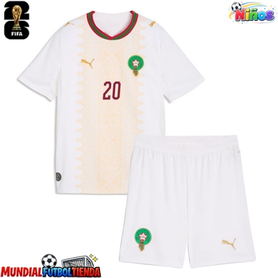 Camiseta Marruecos Ayoub El Kaabi #20 Segunda Equipación Replica Mundial 2026 para niños mangas cortas (+ Pantalones cortos)