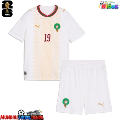 Camiseta Marruecos Youssef En-Nesyri #19 Segunda Equipación Replica Mundial 2026 para niños mangas cortas (+ Pantalones cortos)