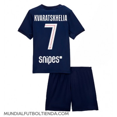 Camiseta Paris Saint-Germain Khvicha Kvaratskhelia #7 Primera Equipación Replica 2025-26 para niños mangas cortas (+ Pantalones cortos)