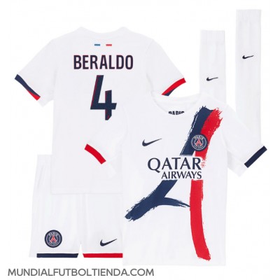 Camiseta Paris Saint-Germain Lucas Beraldo #4 Segunda Equipación Replica 2025-26 para niños mangas cortas (+ Pantalones cortos)