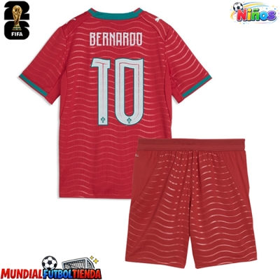 Camiseta Portugal Bernardo Silva #10 Primera Equipación Replica Mundial 2026 para niños mangas cortas (+ Pantalones cortos)
