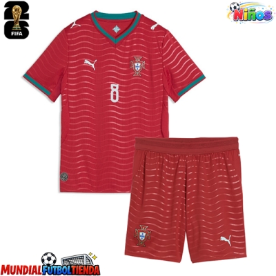 Camiseta Portugal Bruno Fernandes #8 Primera Equipación Replica Mundial 2026 para niños mangas cortas (+ Pantalones cortos)