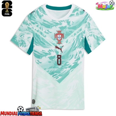Camiseta Portugal Bruno Fernandes #8 Segunda Equipación Replica Mundial 2026 para mujer mangas cortas
