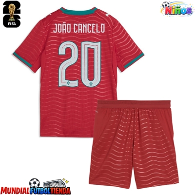 Camiseta Portugal Joao Cancelo #20 Primera Equipación Replica Mundial 2026 para niños mangas cortas (+ Pantalones cortos)