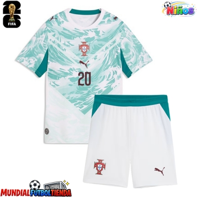 Camiseta Portugal Joao Cancelo #20 Segunda Equipación Replica Mundial 2026 para niños mangas cortas (+ Pantalones cortos)