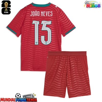Camiseta Portugal Joao Neves #15 Primera Equipación Replica Mundial 2026 para niños mangas cortas (+ Pantalones cortos)