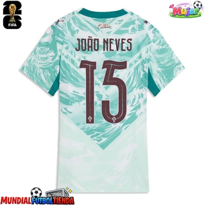 Camiseta Portugal Joao Neves #15 Segunda Equipación Replica Mundial 2026 para mujer mangas cortas