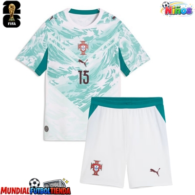 Camiseta Portugal Joao Neves #15 Segunda Equipación Replica Mundial 2026 para niños mangas cortas (+ Pantalones cortos)