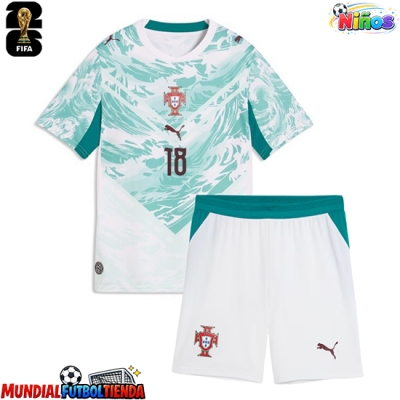 Camiseta Portugal Pedro Neto #18 Segunda Equipación Replica Mundial 2026 para niños mangas cortas (+ Pantalones cortos)