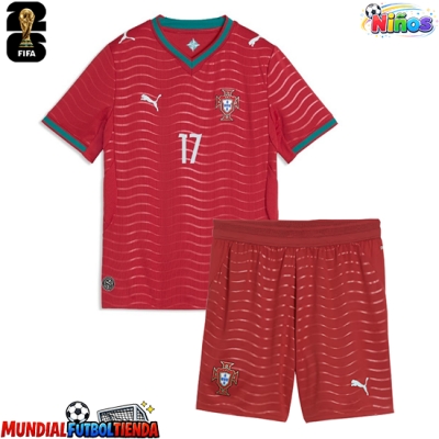 Camiseta Portugal Rafael Leao #17 Primera Equipación Replica Mundial 2026 para niños mangas cortas (+ Pantalones cortos)