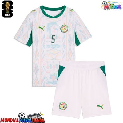 Camiseta Senegal Idrissa Gueye #5 Primera Equipación Replica Mundial 2026 para niños mangas cortas (+ Pantalones cortos)
