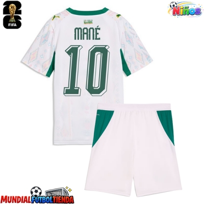 Camiseta Senegal Sadio Mane #10 Primera Equipación Replica Mundial 2026 para niños mangas cortas (+ Pantalones cortos)
