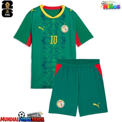 Camiseta Senegal Sadio Mane #10 Segunda Equipación Replica Mundial 2026 para niños mangas cortas (+ Pantalones cortos)
